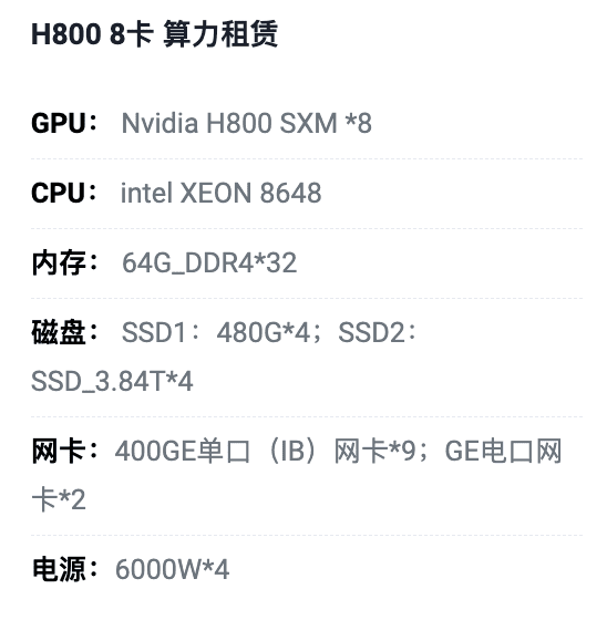 惠州H800八卡算力租用价格